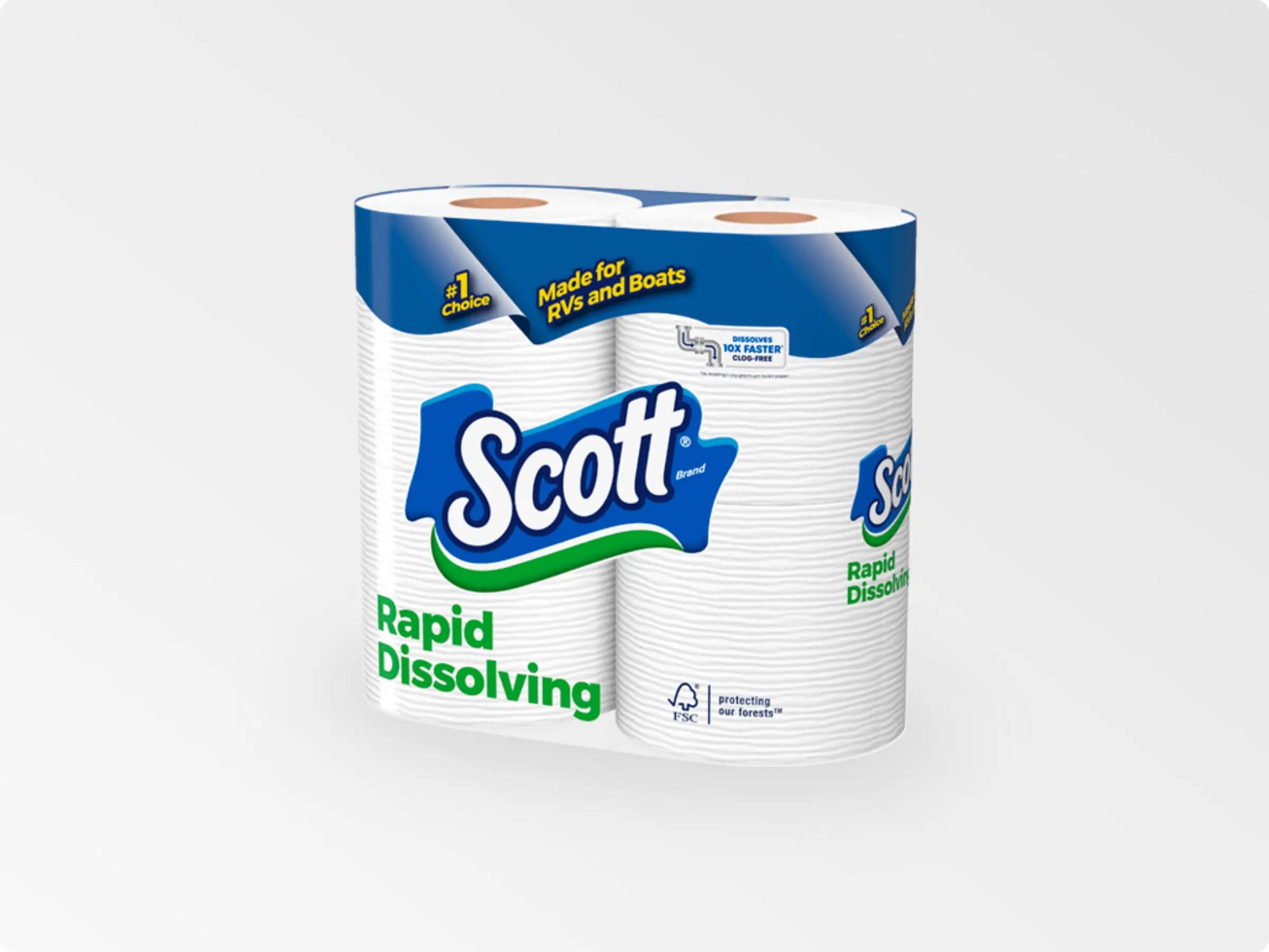 Trusted for flushability, Scott® Rapid-Dissolving toilet paper is the #1 choice made for RVs and boats.